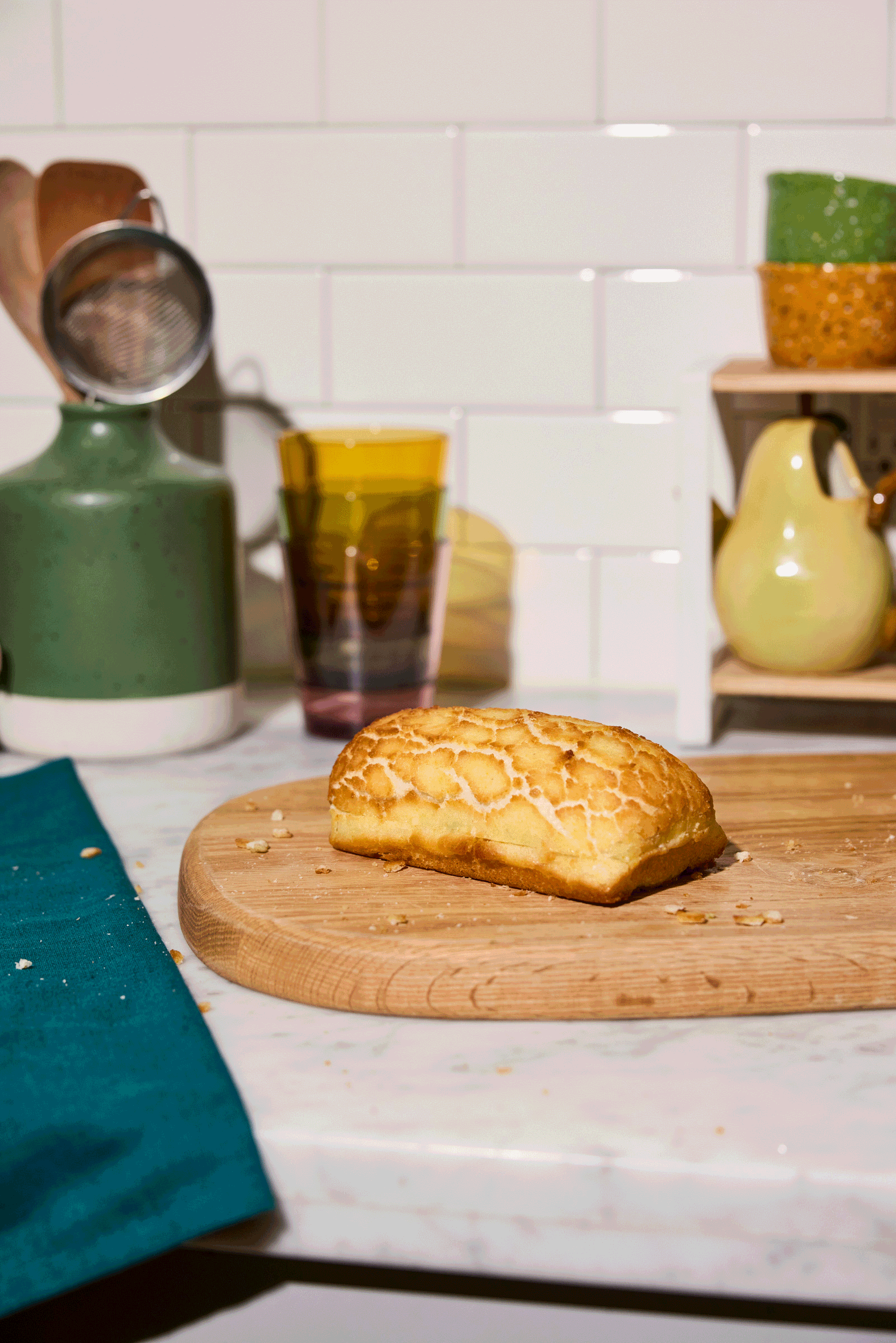 Alias “tiger bread”, Dutch Crunch is a truly unique type of bread loved for its signature crackled top and soft, fluffy interior. The magic is in the special topping that’s brushed on the top of the bread. As the bread bakes, the topping cracks and crisps, creating a one-of-a-kind crunchy, golden top.